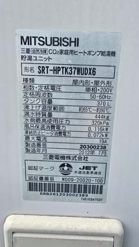 草津市野路 三菱電機自然冷媒CO2家庭用ヒートポンプ給湯機 貯湯ユニットSRT-HPTK37WUDX6→コロナ自然冷媒CO2家庭用ヒートポンプ給湯機 ヒートポンプユニットCHP-DZ601K、貯湯ユニットCTU-46AZ1K エコキュート交換工事